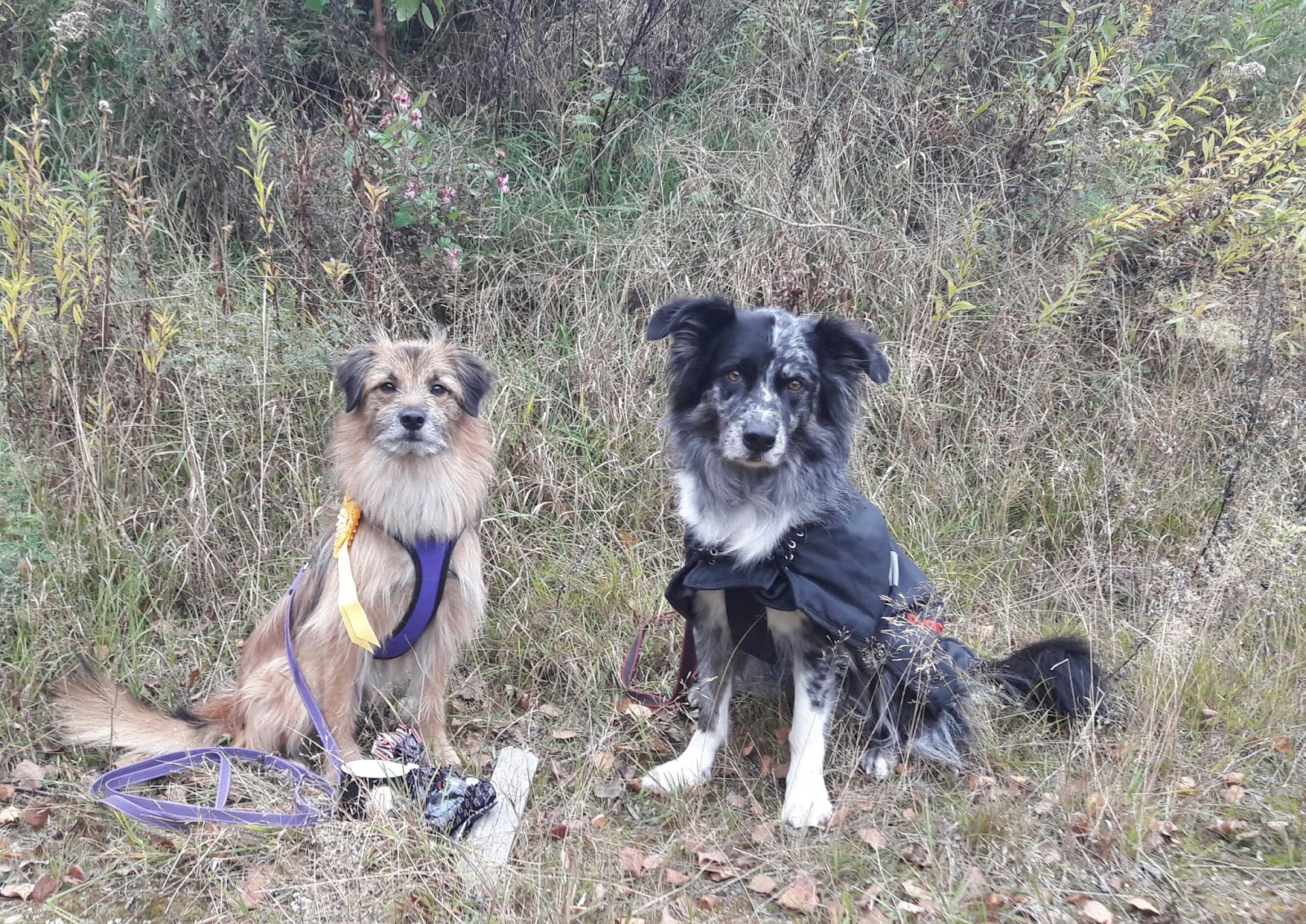 Kisa-aamuna mietin, että koska otan Hurman joka tapauksessa mukaan, niin otanpa sen rekkarin ja rokotustodistuksen lisäksi myös RT-kilpailukirjan. Kilpailupaikalla kysyin toimitsijoilta voisiko vielä yhden koiran ilmoittaa kilpailuun, koska emme muuten saa kasaan joukkuetta - ja se onnistui!!! Hurma pääsi kisaamaan myös AVO-luokkaan.